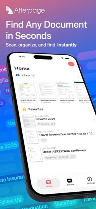Afterpage: PDF Tarayıcı, dağınık kağıt yığınlarını temiz, arama yapılabilir dijital arşiv'e dönüştürmek için tasarlanmış ücretsiz bir belge tarayıcı ve yardımcı uygulamadır. Belgeleri düzgün bir şekilde kategorize etmenize ve saklamanıza yardımcı olur. Otomatik kenar algılama ve basit içe aktarma kullanarak, fizikselden dijitale geçişi pürüzsüz ve zahmetsiz hale getirir.